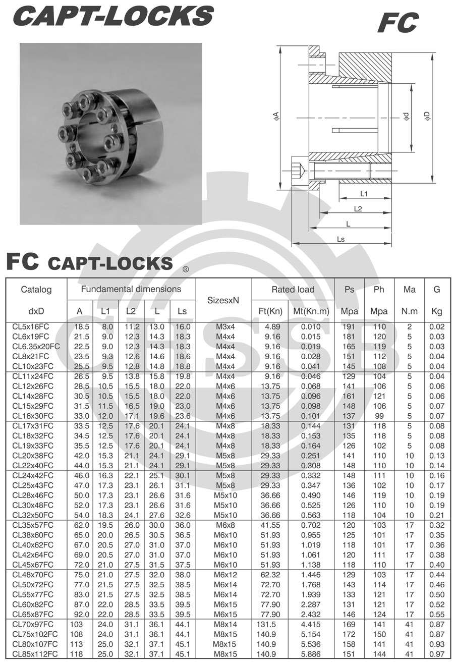 不高等特點。FC型脹套是FA2型脹套的輕型系列,其內孔、外圓差值小,適合與結構尺寸緊湊部位的聯結。